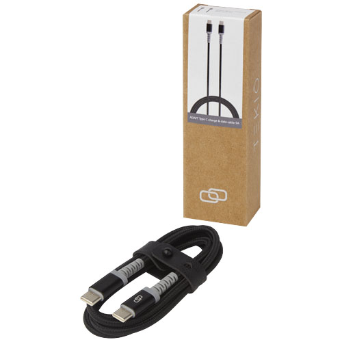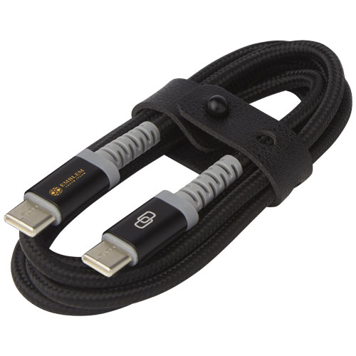 Stilig og høykvalitets ladekabel med flettet nylon. USB-C til USB-C, inkludert støtte for strømlevering PD og dataoverføring. Opptil 5 A strøm. Leveres med kabelbinding for enkel organisering. Leveres i en førsteklasses kraftpapireske med et fargerikt klistremerke.