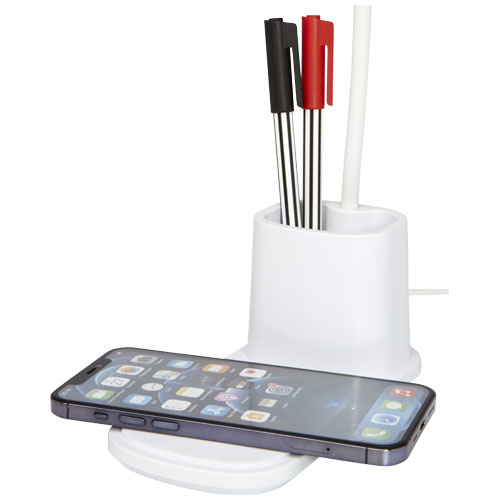 Skrivebordslampe med integrert trådløs lader og blyantholder. Lampen har 3 lysinnstillinger varm kald medium og kan justeres i høyden. Laderen har en 10 W-utgang og er kompatibel med alle Qi-enheter iPhone 8 eller nyere og Android-enheter som støtter trådløs lading .