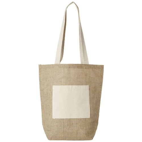 Handlenett i strie med åpent hovedrom og små frontlommer. Håndtakene er 31 cm.