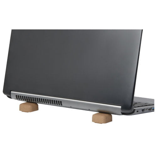 Laptop-stativ laget av kork som lar deg heve laptopen for å se på skjermen i en riktig holdning. Den er lett å installere og den medfølgende posen gjør den lett å bære med. Stativet består av 2 stykker, hver med en størrelse på 40 x 40 x 20 mm. Leveres i en førsteklasses papireske med et fargerikt klistremerke.