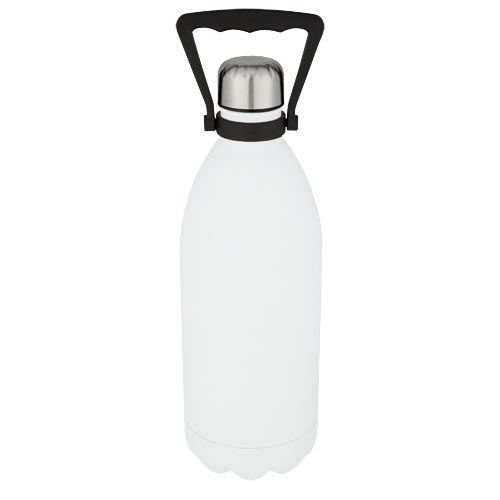 Ekstra stor vakuumisolert flaske av rustfritt stål, med et ikonisk design med et komfortabelt håndtak for enkel transport. Isolert 18 8 rustfritt stål holder drikker varme eller kalde i flere timer. Uten BPA, testet og godkjent i henhold til tysk lovgivning for matsikkerhet LFGB . Testet og godkjent for ftalater i henhold til REACH-forskriftene. Volumkapasiteten er 1,5 liter. Håndvask anbefales. Kommer i en hvit gaveeske i papp.