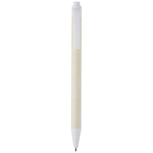Kulepenn med pennekropp laget av resirkulerte melkekartonger opptil 70 . Knappen, klipset og spissen er laget av PLA plast. Brukte melkekartonger samles inn, sorteres, bearbeides og gjøres om til papir – noe som virkelig gjør om avfall til noe nyttig.