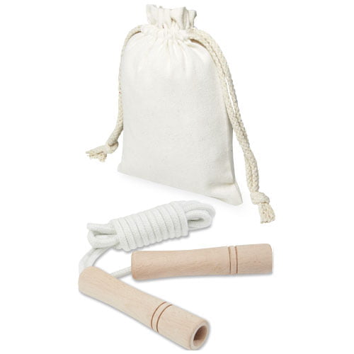 Kombiner moro og trening med dette hoppetauet for voksne. Tauet er laget av bomull og håndtakene er laget av bøk. Lengden på tauet er 310 cm, noe som gjør det enkelt å hoppe for voksne med høyde opptil 195 cm. Håndtakene 12 x 2,5 cm er ergonomisk formet og gir et behagelig grep. Leveres med en oppbevaringspose i bomull 18 x 13 cm . Lasergravering anbefales som et bærekraftig dekorasjonsalternativ.