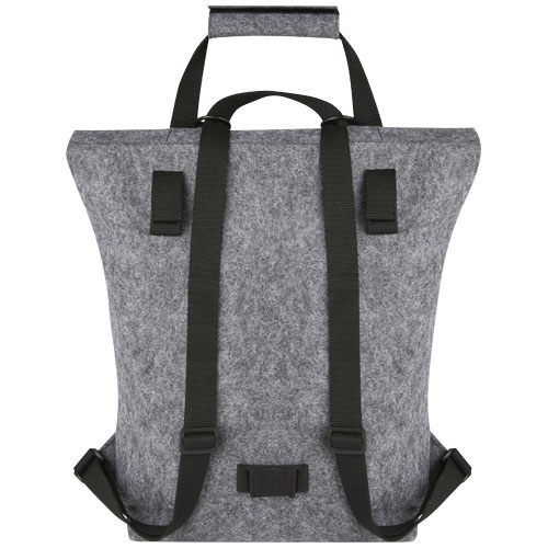 Multifunksjonell og trendy kombinert rulletoppsekk og sykkelveske laget av høykvalitets, myk og slitesterk GRS sertifisert resirkulert filt. Har et stort hovedrom, frontlomme, justerbare skulderstropper og 3 krokstropper for å feste vesken på baksiden av en sykkel. Skulderremmene kan enkelt forvandles til et langt bærehåndtak eller pakkes sammen slik at remmene holder seg fri fra å bli fanget i et sykkelhjul.