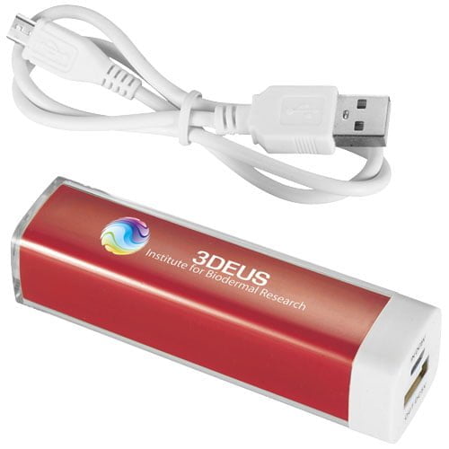 Batterikapasiteten på 2200 mAh gir nok strøm til å kunne lade en mobilenhet. Ladebanken lader på 2 timer med USB-kabelen som følger med, og lyser rødt når den lader, slås av når enheten er ladet opp, eller lyser blått når den er helt utladet. Leveres i hvit pappeske.