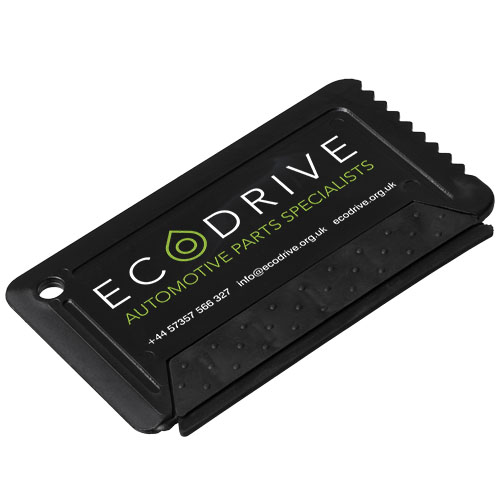 Hendig isskrape med integrert gummistripe som er kompakt for enkel oppbevaring. .