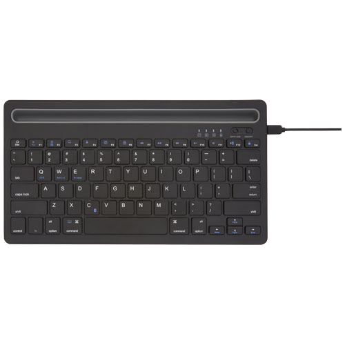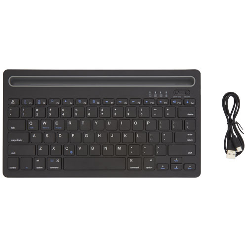 Kompakt QWERTY-tastatur med 78 taster. Bluetooth R sirklet 3.0 med støtte for to kanaler, slik at det kan kobles til to enheter samtidig. Integrert dokkingstativ for telefon og nettbrett. Tastaturet er kompatibelt med PC bærbar PC, nettbrett, mobiltelefoner, smart-TV-er og andre enheter med Bluetooth R sirklet-funksjon. Driftsavstanden er opptil 10 meter. Det innebygde oppladbare batteriet på 150 mAh gir minst 40 timers bruk, eller opptil 6 måneder i ventemodus. Ladingen tar ca. 3 timer. Leveres i en førsteklasses kraftpapireske med et fargerikt klistremerke.