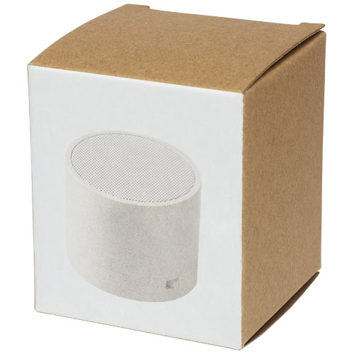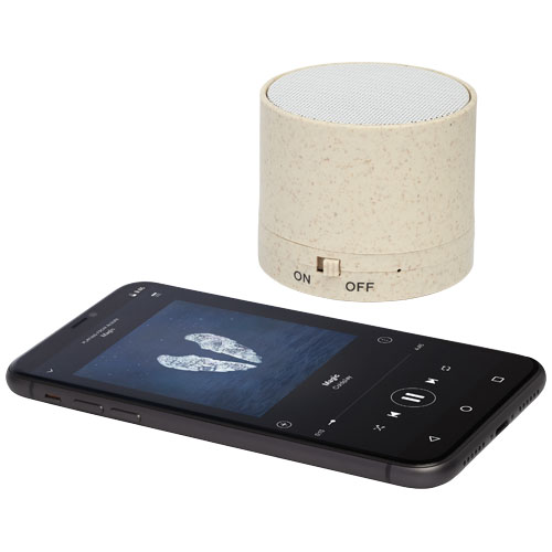 Bluetooth R sirklet høyttaler produsert av en blanding av hvetehalm og plast, noe som reduserer den nødvendige plastmengden. Høyttaleren gir med sin 3W utgang krystallklar lyd med over 1,5 timers spilletid ved maksimalt volum. Bluetooth R sirklet 5.0. Pakket i gaveeske og leveres med en manual begge i bærekraftig materiale . Mikro USB ladekabel er inkludert.