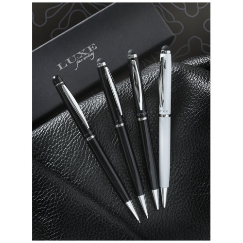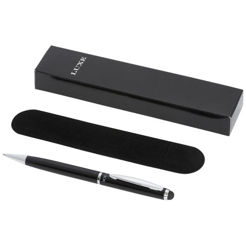 Eksklusivt designet stylus-penn med vrimekansime med fløyelsveske. Pakket i en ” LUXE” gaveeske størrelse 17 x 3,5 x 2 cm .