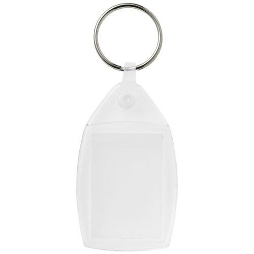 Clear P6 nøkkelkjede med en nøkkelring i metall og dynamisk plastklips. Plastklypefestet har en flat profil, noe som gjør den ideell for utsendelse. Utskriftsdimensjoner for innlegg 3,5 cm x 2,4 cm.