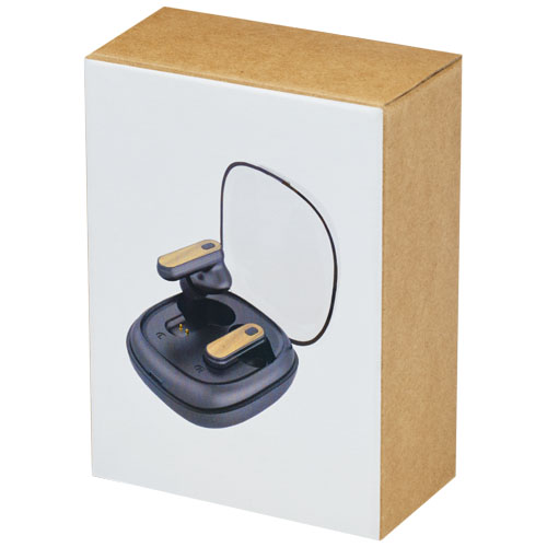 Bambus TWS-ørepropper med automatisk sammenkoblingsfunksjon for enkel tilkobling til en mobil enhet. Avspillingstid er opptil 3,5 timer ved maks volum, øreproppene kan lades fullstendig innen 2 timer. Bluetooth R sirklet 5.0 med opptil 10-meters rekkevidde. Multifunksjonsknapp med alternativer for spille pause neste spor forrige spor svare avvise telefonsamtale. Inkluderer silikonørepropper i 3 forskjellige størrelser for optimal komfort. Leveres i en gaveeske med instruksjonsveiledning begge laget av bærekraftige materialer .