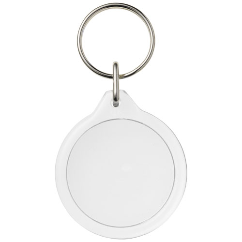 Clear I7 rundt nøkkelkjede med nøkkelring i metall. Metalløkkeringen har en flat profil, noe som gjør den ideell for utsendelse. Diameter for trykt innlegg 3,3 cm.