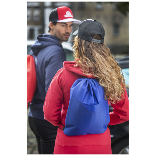Kjølebag med snøre i svart farge. Har en åpen frontlomme. Kan holde opptil 5 kg.