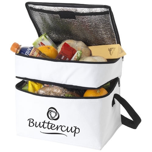 Vær trygg på at du har avkjølt drikke og snacks når som helst og hvor som helst med Oslo kjølebag. Kjølebagen har to separate lommer med glidelås. Den øvre delen er perfekt for oppbevaring av små snacks, og den nedre delen er ideell for større dagligvarer. Skulderremmen er justerbar, så vesken er lett å bæree. Kjølebagen består av 600D polyester, et kraftig og slitesterkt stoff.
