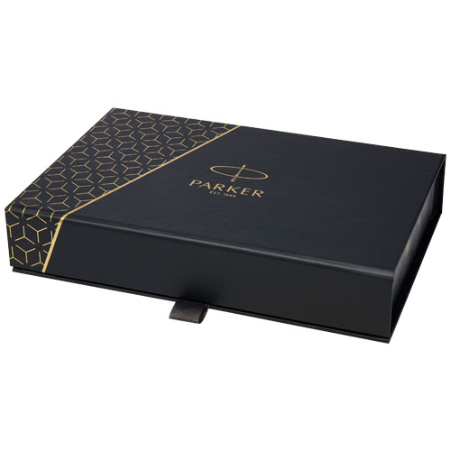 Gavesett med to penner bestående av IM akromatisk kulepenn med blått blekk og IM akromatisk rollerpenn med svart blekk. Med et moderne og stilig design, hever Parker IM stilen og den daglige skriveopplevelsen over mengden. Dette hverdagslige pennesettet gir god valuta for pengene, og er et første skritt inn i kategorien for penskrift. Eksklusivt design. Pakket i en gaveeske.