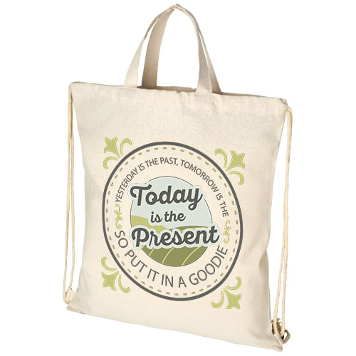 Gympose produsert av 210 g m resirkulert bommulls- og polyesterblanding. Resirkulert bomull produseres fra produksjonsrester generert av tekstilfabrikker under tilskjæringsprosessen. Stort hovedrom med bomullssnorlukking. Har to håndtak med en fallhøyde på 14 cm. Kan bære opptil 5 kg vekt.