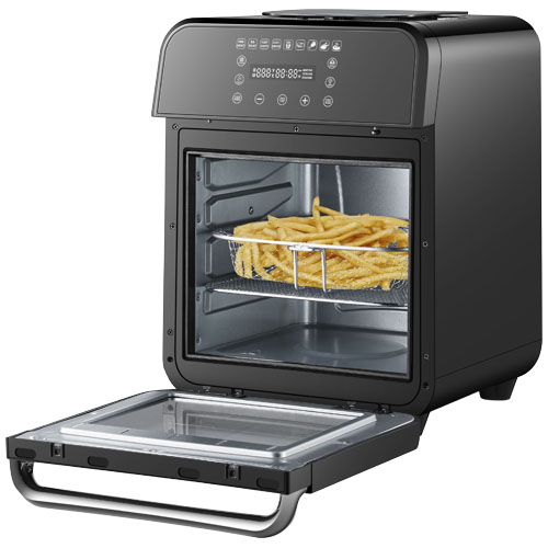 Airfryer for matlaging av retter på en sunn måte og uten olje. Det fungerer med sirkulasjonsteknologi for varmluft som omgir maten. Designet som en ovn med et integrert vindu. Integrert intuitiv berøringsskjerm som gir tilgang til alle funksjoner. Den har seks forskjellige programmer Frosne pommes frites, hjemmelaget pommes frites, kyllinglår, kylling, fisk og kjøtt. I tillegg har den fire funksjoner forvarme, gjenoppvarme, holde varmen og tine. Seks deler med tilbehør er inkludert Nettingkurv, sylindrisk bur, pizzapanne, stekestativ, ristetang, gafler og stekespyd. Effekt på 1 500 W.