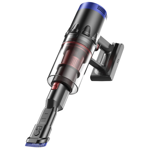 Støvsuger med 2 hastighets- effektnivåer. Batteri 25,9 V. 2 500 mAh. Ladetid 4,5 – 5 timer. Pulverbeholderens kapasitet 0,65 liter. Rørlengde 68 cm. Motorisert børste 20 W. Hepa filter. Volum i desibel 76 dB. Sugetrykk lav modus 7 kPa høy modus 21 kPa. Motoreffekt 350 W. Inkluderer enhet for veggmontering.