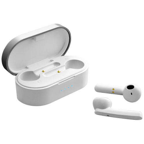 Trådløse ørepropper med Bluetooth R sirklet 5.0 for å opprette en høykvalitetstilkobling med den sammenkoblede enheten. Innebygd mikrofon med håndfrifunksjon for å ta telefonsamtaler. Ytterligere funksjoner som kan kontrolleres med øreproppene Slå av på, stemmeassistent, musikkontroll, volumkontroll, svare avvise legge på telefonsamtaler.