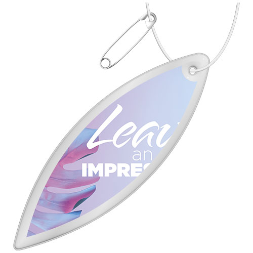Fest denne hanger refleksen til klær, vesker eller andre utendørsartikler for å øke synligheten i mørket. Ved å bruke disse sertifiserte hanger refleksene gjør du trafikksikkerhet til en funksjon for merkevaren din. Hangerne leveres med hvit snor og sikkerhetsnål for enkel montering. Tilgjengelig i ulike former og størrelser, og i hvit eller gul farge. Har en fluorescerende RFX TM myk reflekterende film laget av ftalatfri PVC eller det mer bærekraftige alternativet TPU. Materialer er testet i henhold til SVHC Substances of Very High Concern REACH-kandidatliste og er fri for ftalater. Hengene er CE-testet og godkjent i henhold til EN 13356 2001 Type 1. Produsert i Europa.