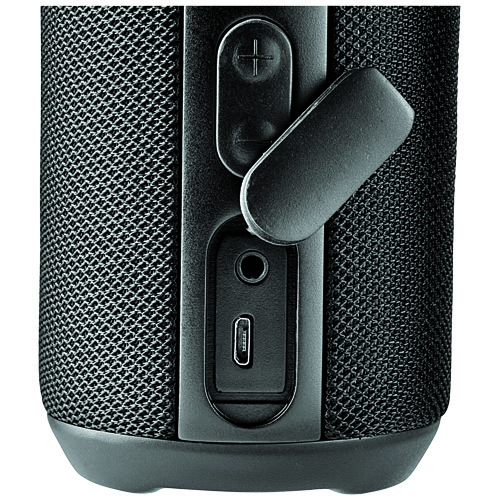 Nytt yndlingsmusikken uansett hvor du er Rugged Fabric vanntett Bluetooth-høyttaler tar du med deg i bassenget, på tur eller neste gang du skal på utefest. Med 10 W utgangseffekt 2 x 5 W og digital lydprosessor fyller høyttaleren ethvert sted med kvalitetslyd. Rugged Fabric vanntett Bluetooth R sirklet utehøyttaler har vanntett-klassifisering IPX6. Med andre ord kan du fint la den bli stående i kraftig regnvær eller miste den i vann uten at den tar skade av det. Også inkludert er en mikro-USB ladekabel og bæresnor. Bluetooth-rekkevidden er 10 meter. Nyt opptil 4 timer med musikk på maks. volum på en lading. Ladetiden er 2,5 timer. Med innebygd mikrofon og lydkontroller, slik at du kan bruke den håndfritt.