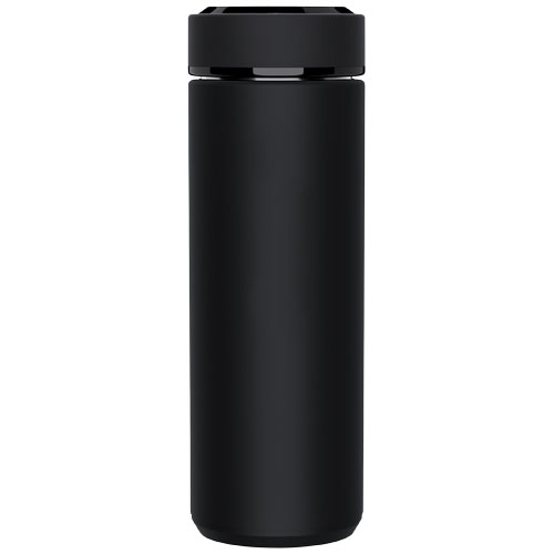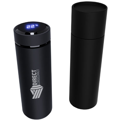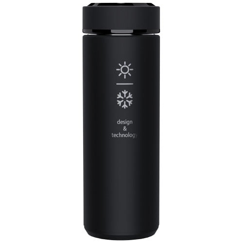 500 ml flaske i rustfritt stål, isolert og med doble vegger med antibakteriell behandling. Flasken er utstyrt med en temperatursensor. Takket være berør og lys systemet vises temperaturen på drikken på flaskekorken i celsius . Passer for både varme og kalde drikker. Kommer i en sylindrisk gaveeske laget av resirkulert papir. Størrelse Ø 47 x 225 mm. Batteri følger med CR 2450 3V . Batteriet kan ikke skiftes ut. Kan vise temperaturen 20 000 ganger.