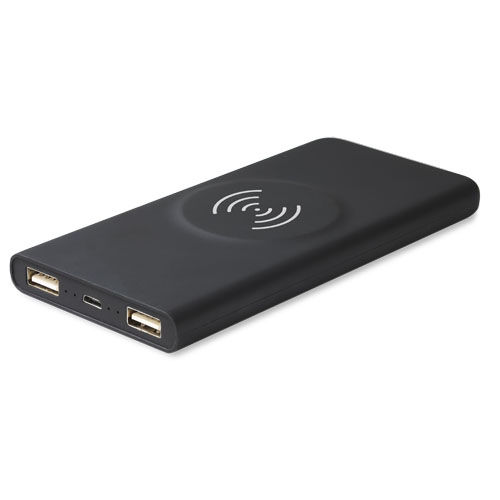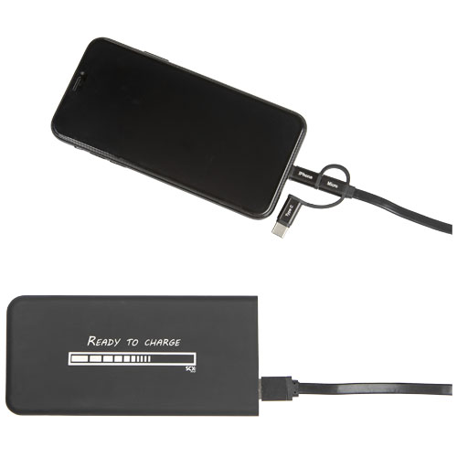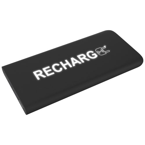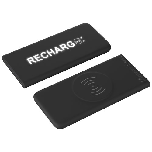 5000 mAh trÃ¥dløs mobillader i gummi med lysende logo, en 3-i-1 resirkulert PET plastkabel type C, Android og iPhone og antibakteriell behandlling. Enheten lyser opp i 30 sekunder nÃ¥r den blir berørt eller nÃ¥r den lades. Kapasitet 5000 mAh. Inngang 5V 2,4A mikro . Utgang 5V 2,4A USB . TrÃ¥dløs utgang 5V 2A max. frekvens 110 kHz – 205 kHz. Nettovekt 148 gram. Størrelse 140 à 67 à 11,8 mm. Leveres med en gaveeske laget av resirkulert papir.
