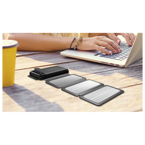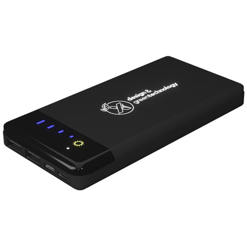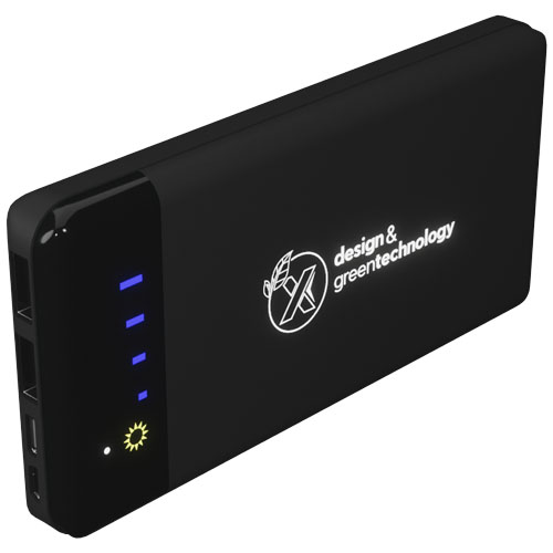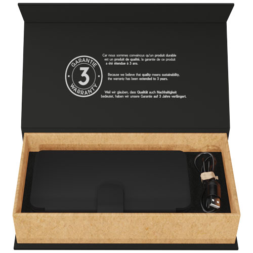 Solcelleladet mobillader med logo og en kapasitet på 8 000 mAh, med en digital skjerm som viser ladefremdriften. Mobilladeren har tre avtakbare monokrystallinske solcellepaneler som fungerer som en mobil og avtakbar ladestasjon. Ladetiden for solceller under perfekte værforhold er 16 timer. Lading kan også gjøres via hovedinngangen med dobbel 2 A USB. Den opplyste logoen lyser når mobilladeren er i bruk. Leveres med en ladekabel laget av resirkulert PET. Mobillader størrelse 15,4 x 8 x 3,1 cm. Pakket i en gaveeske i resirkulert kraft papir 18 x 10 x 5 cm med magnetisk lukking. Inkluderer 3 års garanti.