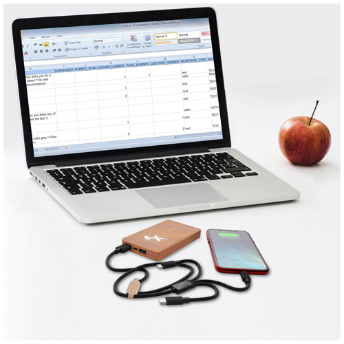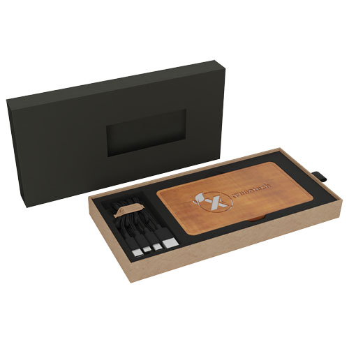 5 000 mAh mobillader 12,5 x 7 x 1,1 cm med 5 W trådløs ladefunksjon. Mobilladeren har dobbel USB 2A utgang og er laget av lønnetre som kommer fra bærekraftige, miljøriktige og sosialt ansvarlige kilder. Treoverflaten er perfekt egnet for gravering som vil lyse opp logoen når mobilbanken er i bruk. Leveres med en 3-i-1 Type C, Micro USB, iPhone ladekabel laget av resirkulert PET. Pakket i en gaveeske 20,1 x 10 x 2 cm med magnetisk lukking. Inkluderer 3 års garanti.