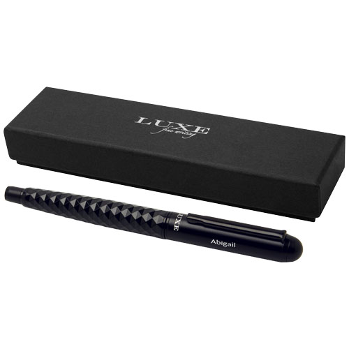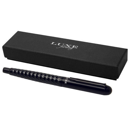 Denne eksklusivt designete kulepennen kombinerer et elegant utseende med et solid preg. Kroppen er supplert med et taktilt grep. Forhåndsfylt med sort blekk-påfyll, pakket i en LUXE -gaveeske. Kan kombineres i et gavesett sammen med en stylus eller en kulepenn med klikk-mekanisme.