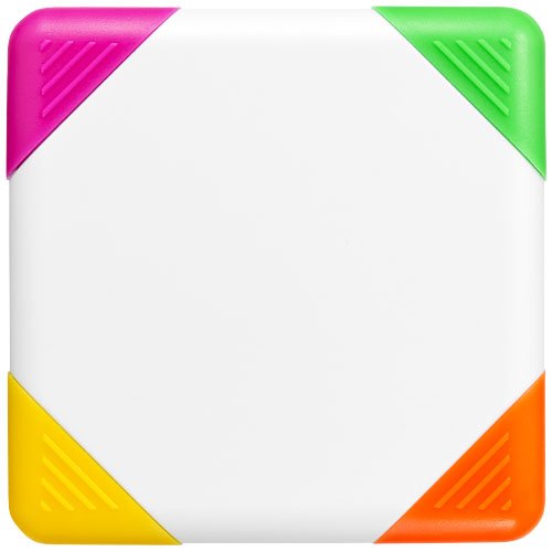 Firkantet markeringspenn med skråstilt tupp i gul, rosa og grønn.