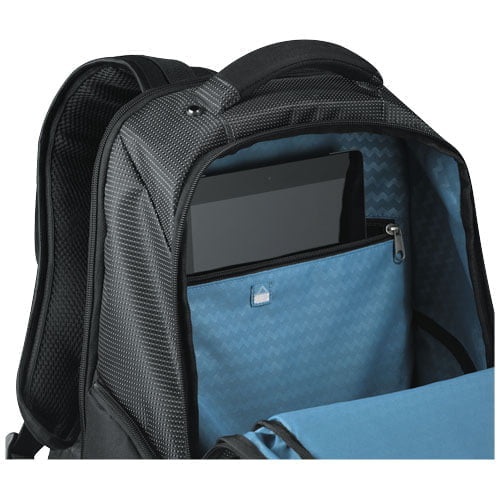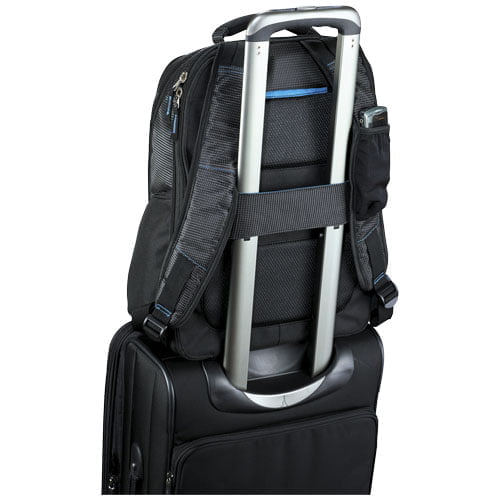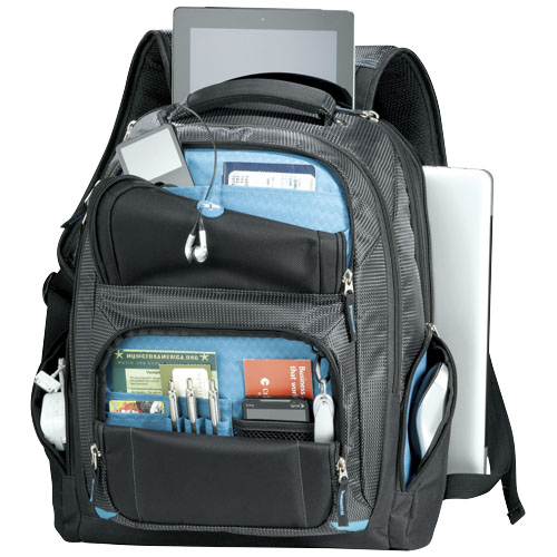 Har en seksjon forberedt for inngang fra siden som foldes ut for å ligge flatt i sikkerhetskontrollen og passer en 15,4″ bærbar PC. Hovedrommet har en egen dedikert nylex-foret polstret iPad R sirklet nettbrettlomme med glidelås. Leveres med to frontlommer med glidelås og et organisasjonspanel inni. Har en port til ørepropper, to sidelommer med glidelås og en nettinglomme. Polstret rygg med neoprenhåndtak og justerbare skulderstropper med medielomme, gripehåndtak og feste til koffert. Kapasitet 23 liter.
