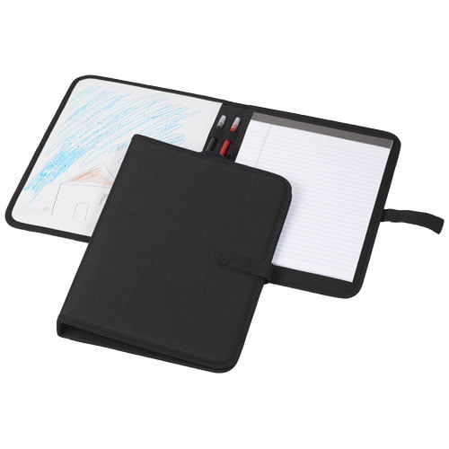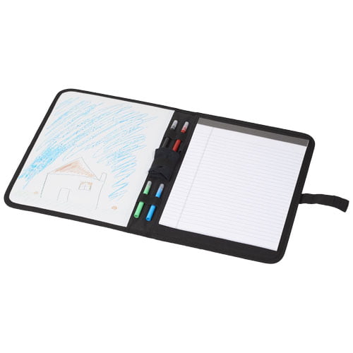 Portefølje i A4-format med borrelås. Inkluderer en tavle og linjert notatblokk med 30 sider. Tusjer og tørkeklut er inkludert.