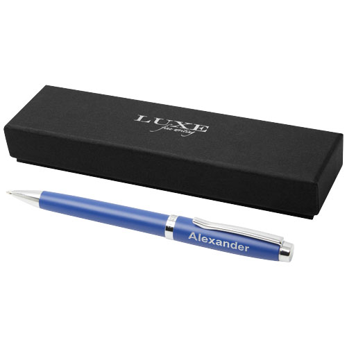 Slank kulepenn med eksklusiv design tilgjengelig i tre ledende farger. Forhåndsfylt med sort blekk, pakket i en LUXE -gaveeske.